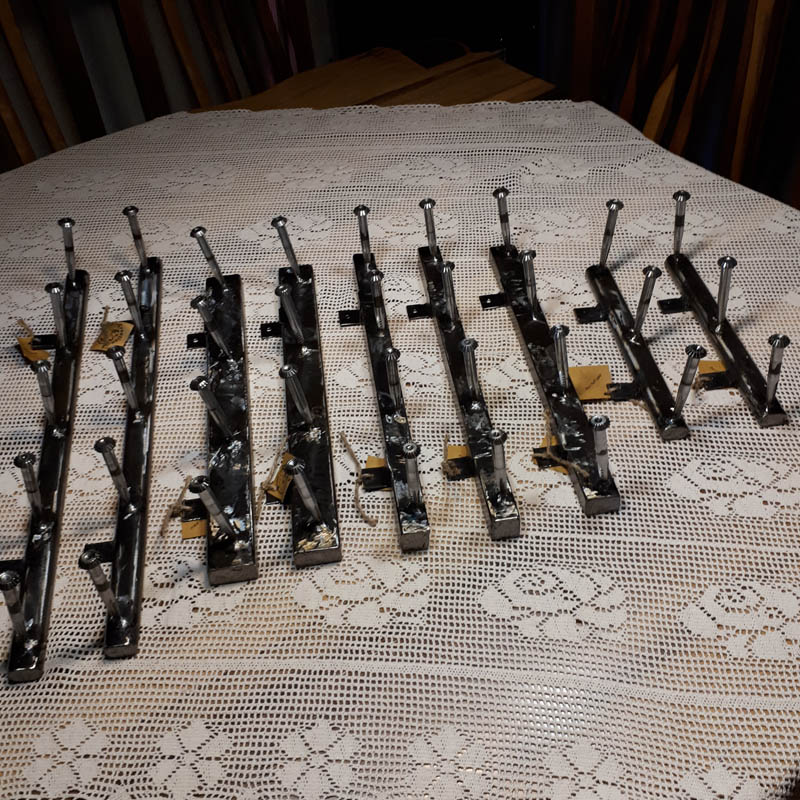 We can remove, repair and replace damaged metal, as well as spray paint and refit metal parts. Also have a look at our gorgeous coat hangers made with repurposed metal bolts, a must have decoration.
